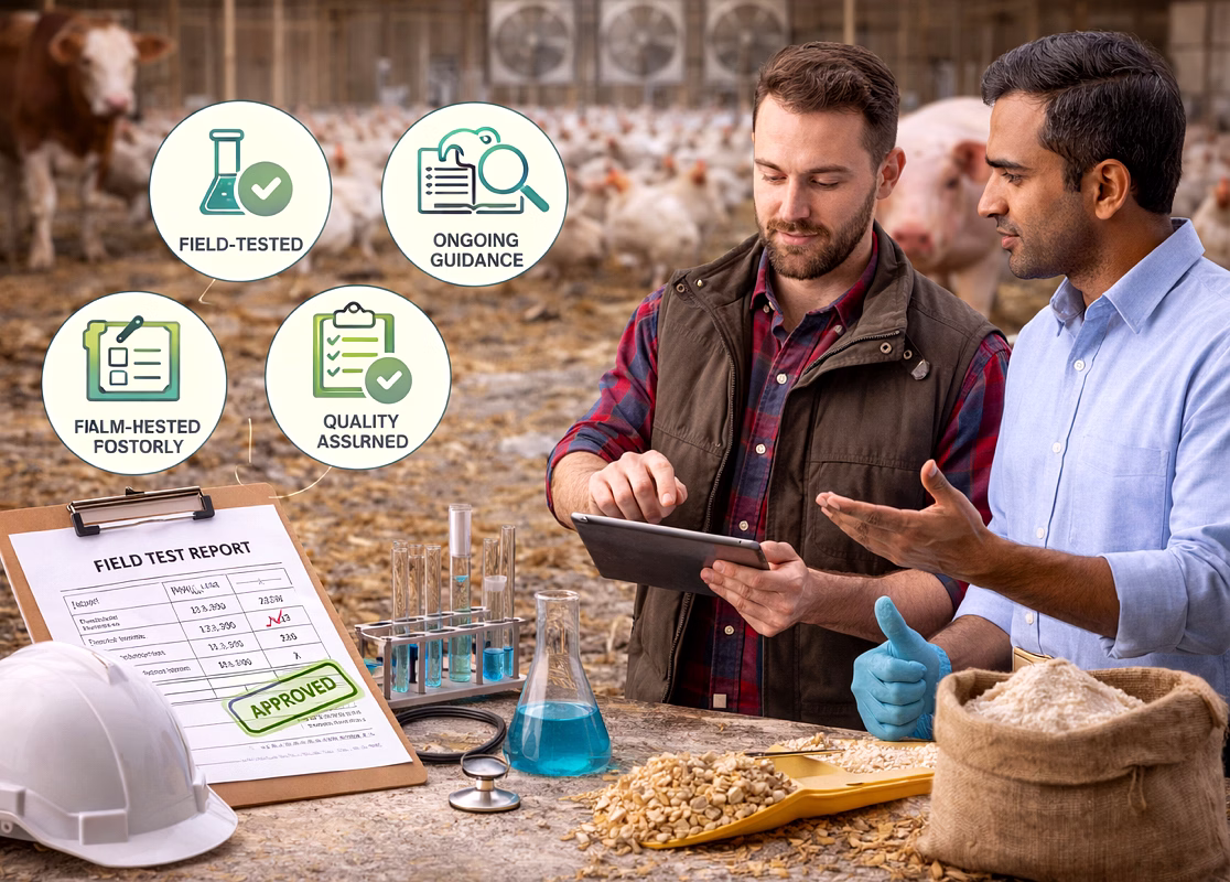 Developed with practical farm realities in mind, our hygiene solutions are field-tested and suitable for a wide range of poultry and livestock operations.